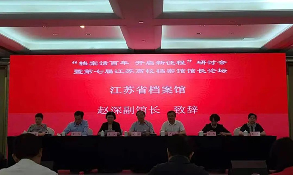 为庆祝中国共产党成立一百周年,加强党对档案工作的全面领导,进一步推动江苏省高校档案工作的创新与发展,开启江苏省档案事业“十四五”发展新征程,6月16至19日,江苏省高校档案研究会常务理事会在连云港市举办“档案话百年 开启新征程”暨第七届江苏高校档案馆馆长论坛。中国档案学会理事长杨冬权、江苏省档案馆副馆长赵深、江苏省高校档案研究会理事长吴玫、连云港市档案局局长薛飞、江苏海洋大学副校长严云洋和110余位来自全省60余所高校的高校代表及档案工作者代表一同参加会议。