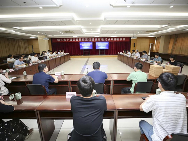 6月23日,浙江省档案局对“绍兴市上虞区智慧档案馆建设项目”试点工作组织验收。浙江省档案馆副馆长郑金月,绍兴市委副秘书长、档案局局长、档案馆馆长丁卓芬,省委办公厅档案信息化处处长梁绍红到会指导,上虞区委常委、副区长凌健出席验收会。