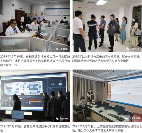 上虞区智慧档案馆建设项目于2019年11月通过电子政务项目专家预审,2020年5月列入全省档案工作试点。区档案馆在区委、区政府的正确领导下,在省、市档案局、馆的大力指导和支持下,大胆探索、凝心聚力、攻坚破难,谋深做细抓实试点项目各项工作,现已完成智慧档案馆三大平台、五个智慧化建设,提出了智慧档案馆建设1.0规范体系。